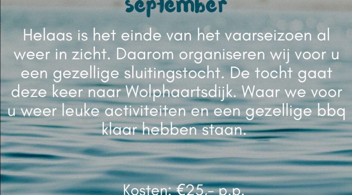 De openingstocht is dit jaar van 29 mei tot en met 1 juni. We varen eerst naar Roompot Marina Haven en daarna naar Wemeldinge. Het weer ziet er nog niet heel florissant uit maar laten we hopen dat de verwachtingen voor donderdag tot en met zondag gunstiger zijn. De evenementencommissie...